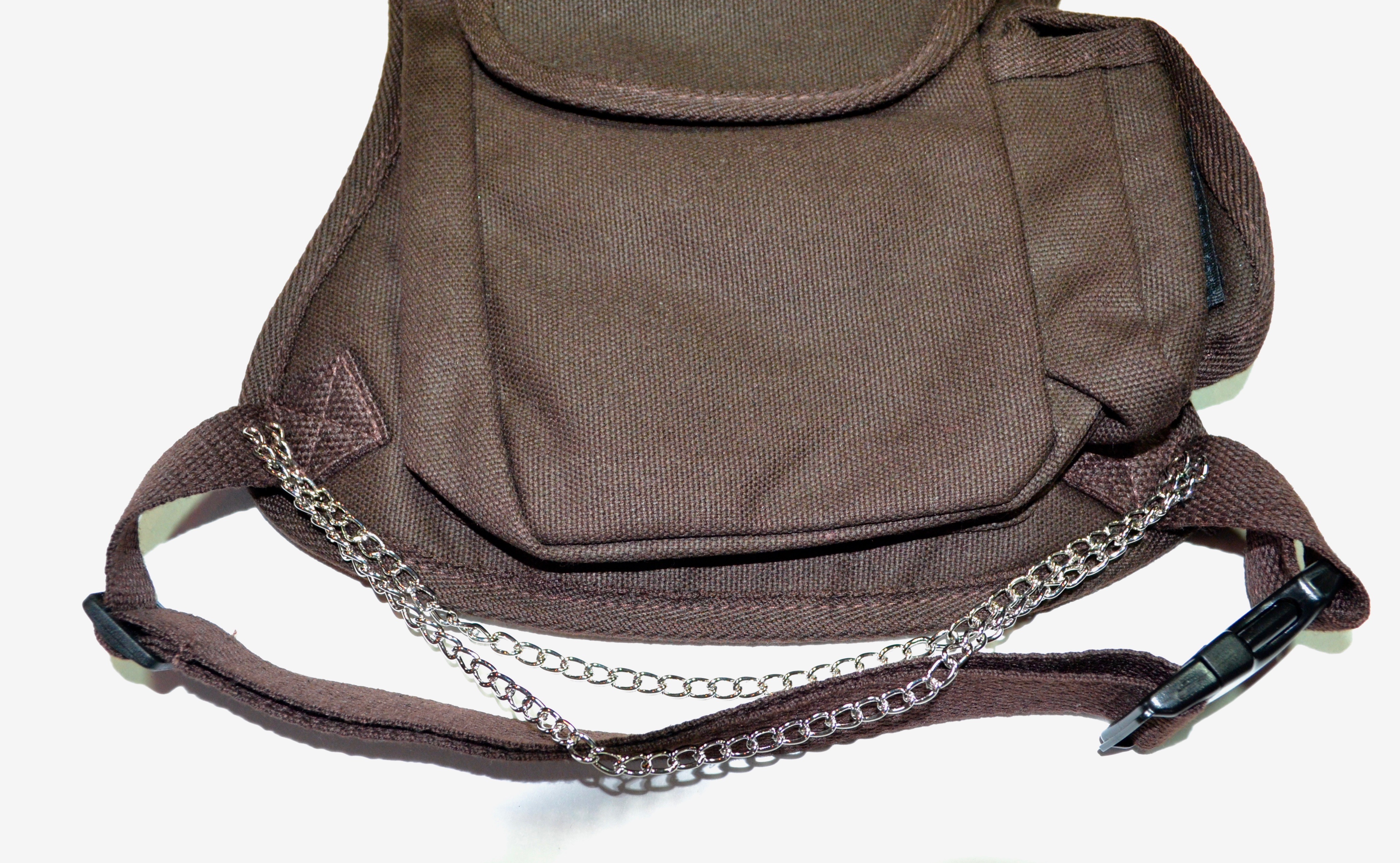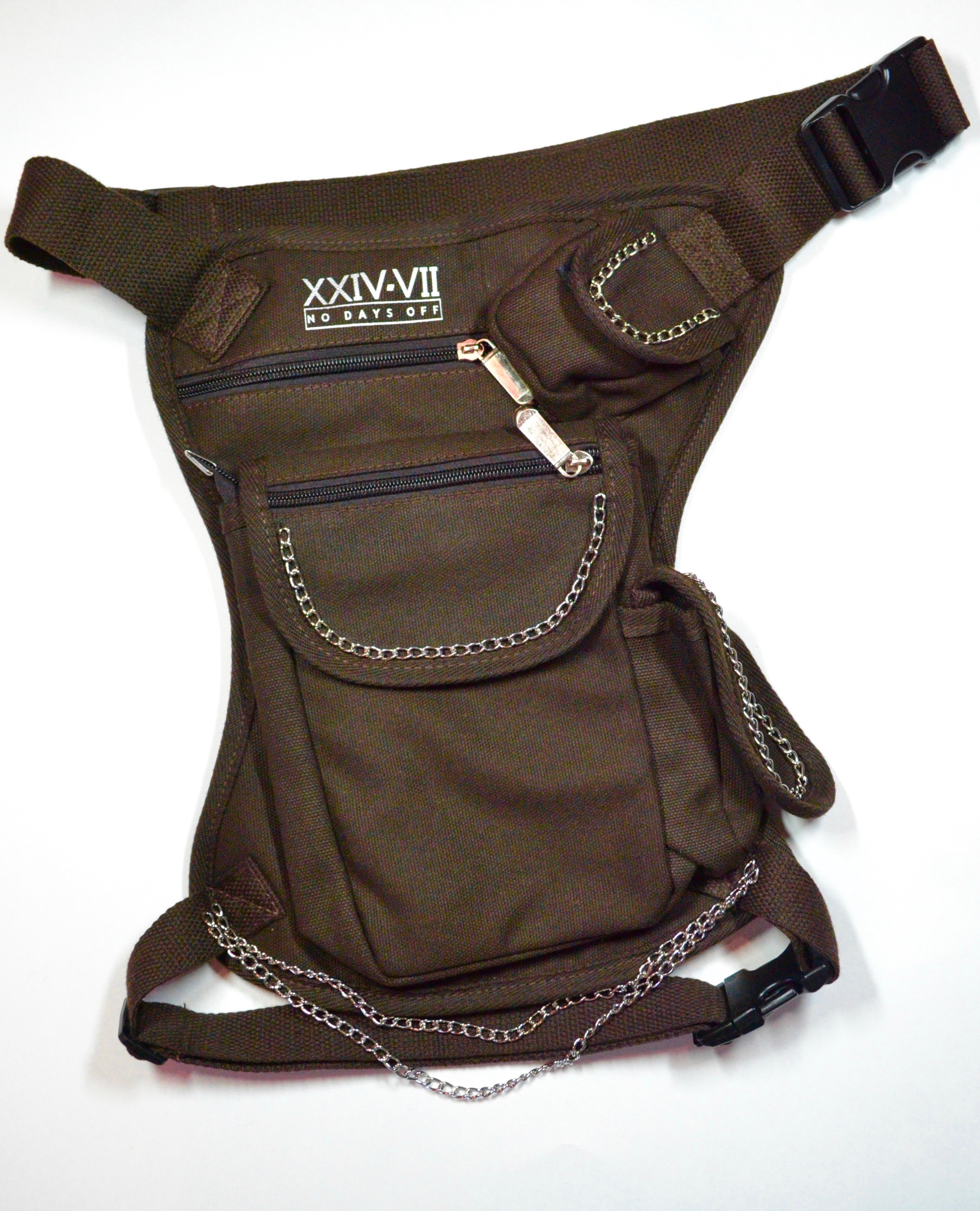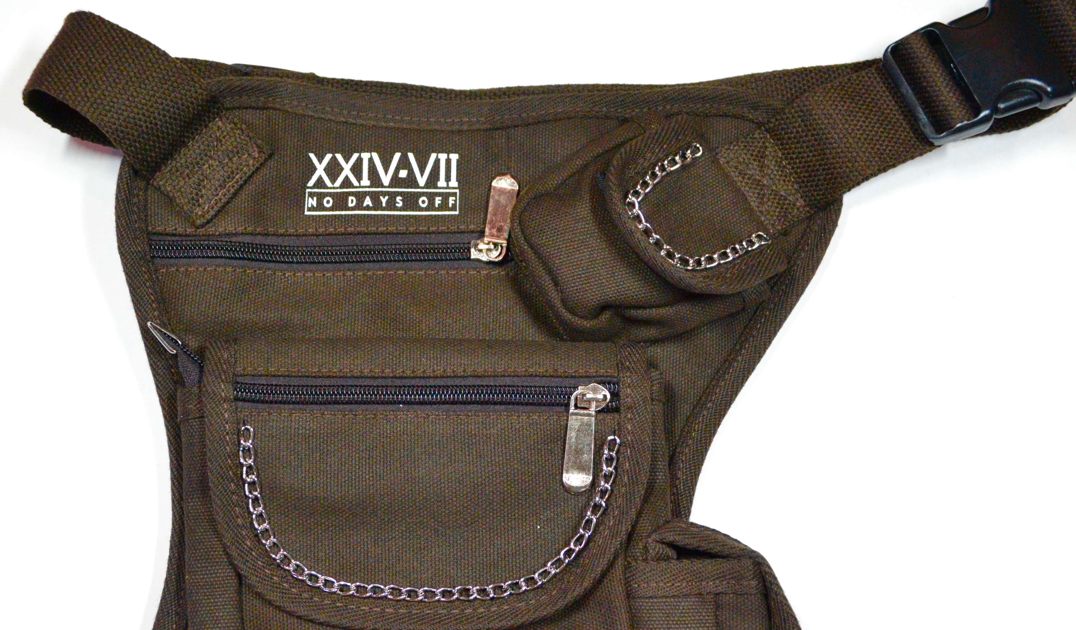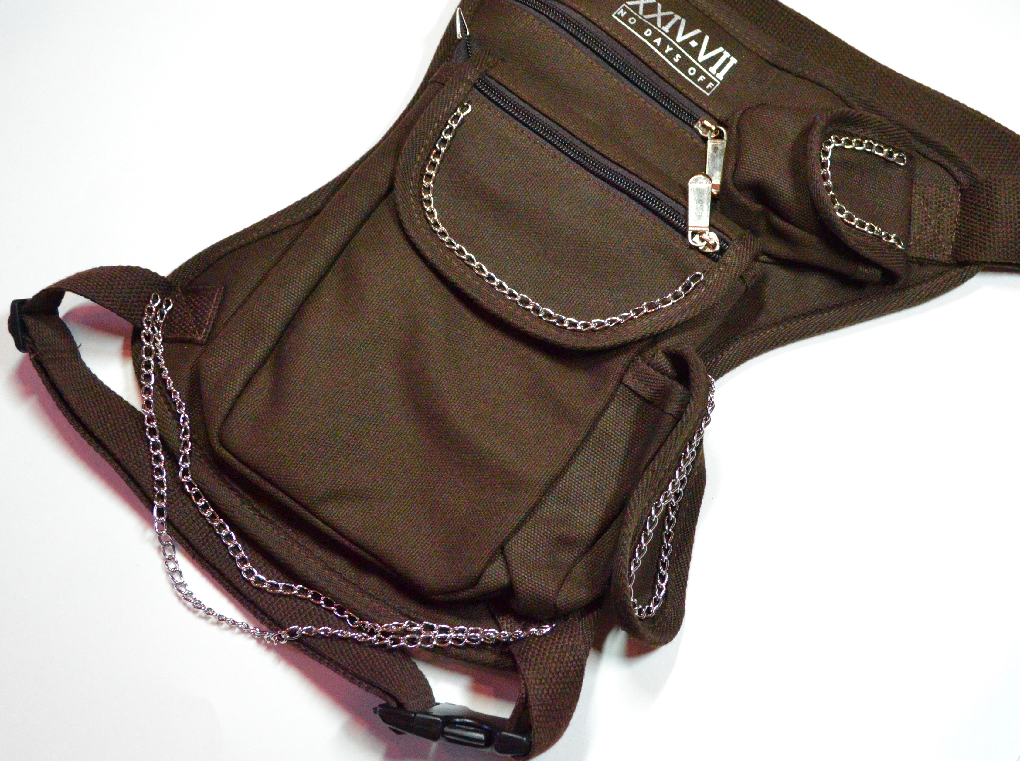 Sporty money pack that buckles around waste and thigh with custom chains.