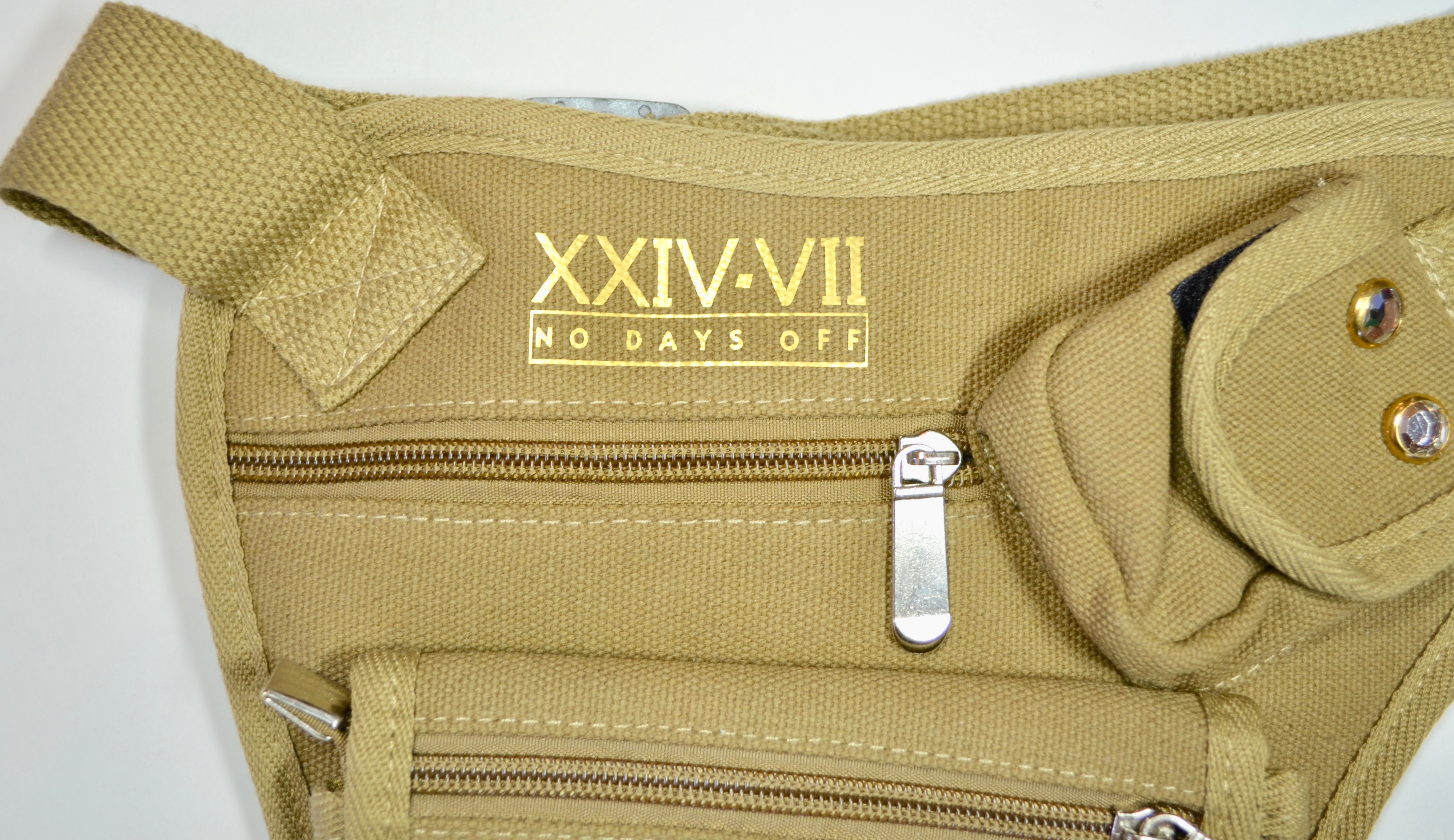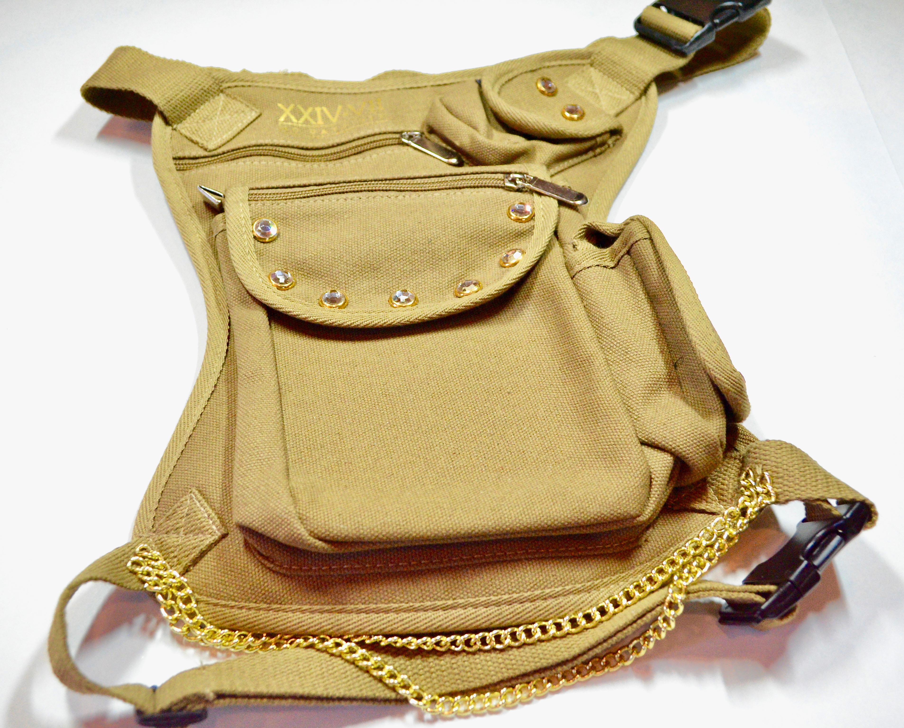 Sporty money pack that buckles around waste and thigh with custom chains.