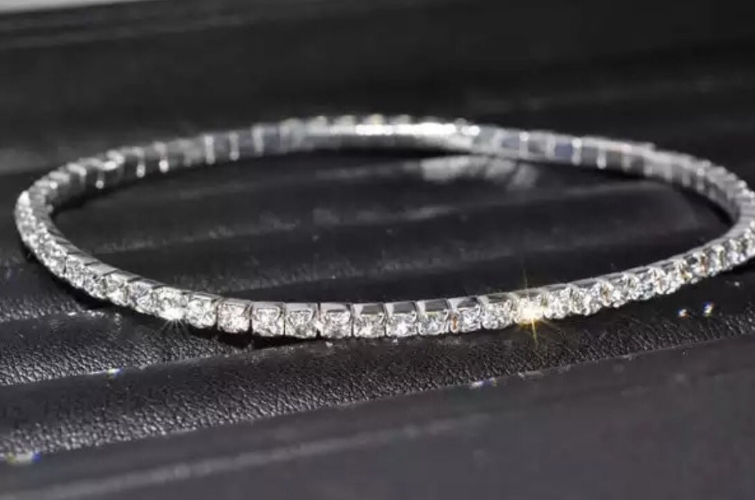 Sexy silver anklet decked out with rhinestones, made with an elastic band to fit a wide range of sizes and for comfortability. The elastic band prevents the general "snap" of anklets and is longer lasting.