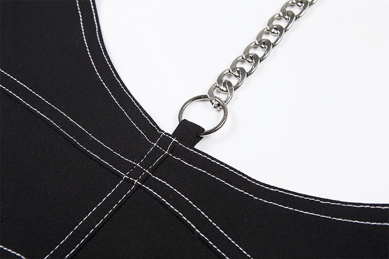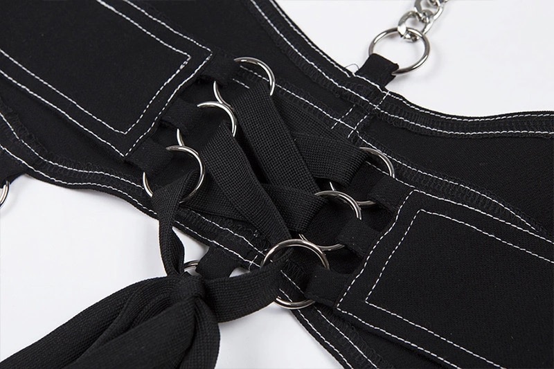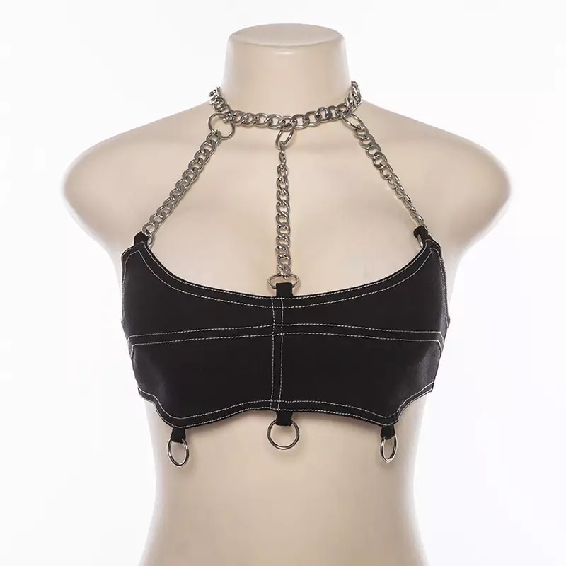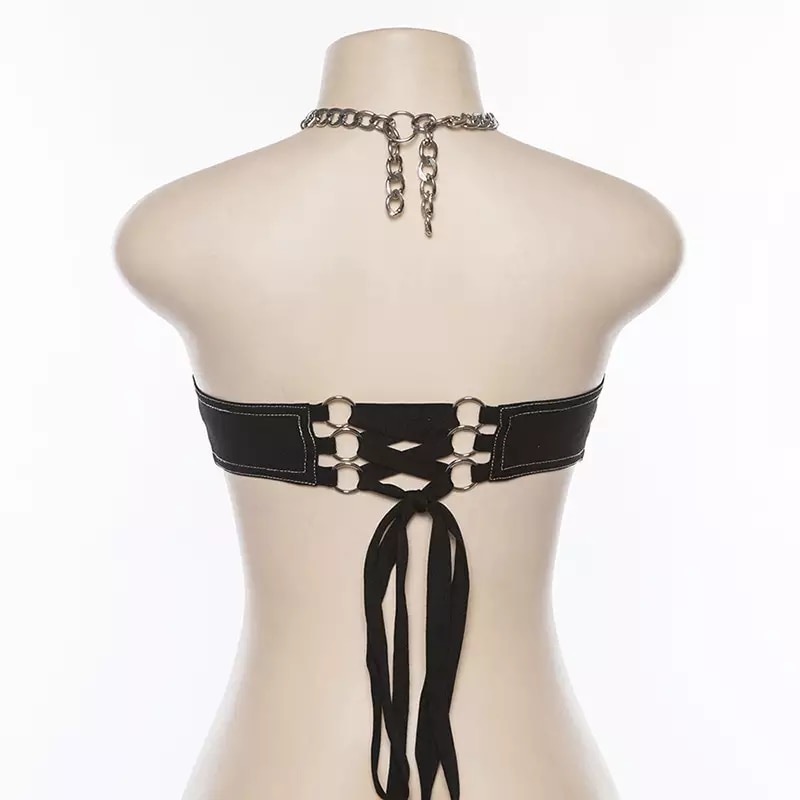 Make a statement in our silver, chain, choker crop top. Laces up in back for an extra "it" factor and size adjustment.