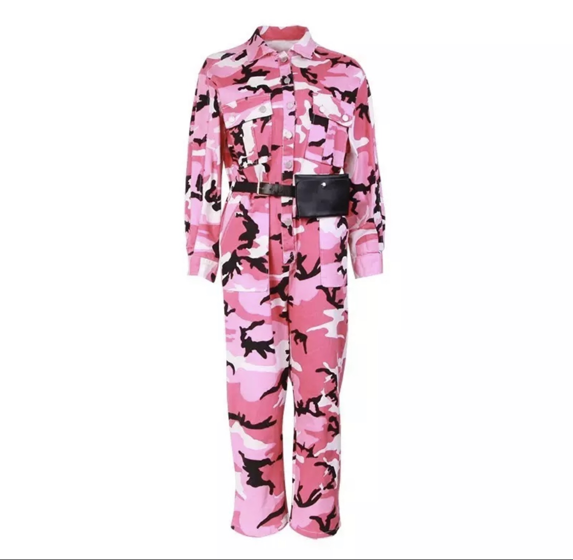 Pank Camouflage jumpsuit. Comes with black pouch belt.