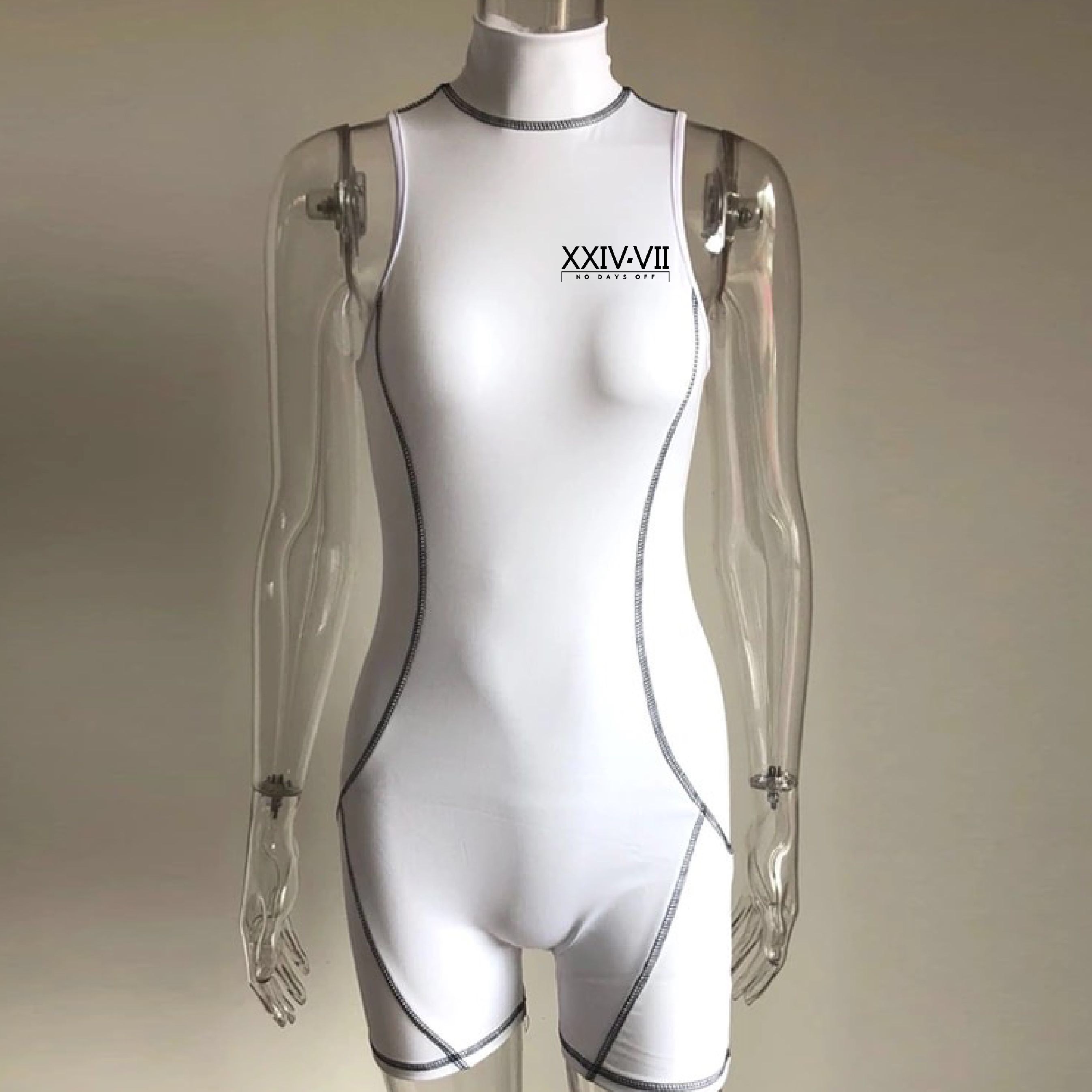Radiate in all white. Fits like a glove. Athletic styled black piping. Classy meets sporty.